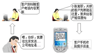 外勤短信通知。客戶電話下單,貨品規(guī)格重量記入數(shù)據(jù)庫,下單完畢,客服人員選擇片區(qū)取件員,輕輕一點,客戶資料及貨物資料全部發(fā)送至取件員手機,不會遺忘,不再混淆。