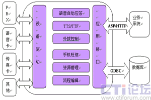 CTI服務(wù)器是整個(gè)系統(tǒng)的核心,通過內(nèi)置電話語(yǔ)音/傳真卡,接入PSTN電話網(wǎng)。該服務(wù)器可作為一個(gè)相對(duì)獨(dú)立的系統(tǒng)單獨(dú)運(yùn)行,也可以通過企業(yè)局域網(wǎng)與企業(yè)的業(yè)務(wù)系統(tǒng)連接。