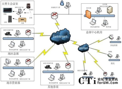 隨著全球經(jīng)濟一體化和網(wǎng)絡經(jīng)濟時代的到來,信息技術對證券業(yè)的影響越來越明顯,信息化水平的高低已經(jīng)成為證券經(jīng)營機構競爭力的重要標志。隨著國內(nèi)數(shù)據(jù)網(wǎng)絡的不斷完善,各證券公司在保證交易業(yè)務的前提下,大部分已經(jīng)完成了廣域網(wǎng)模式下的ISDN、DDN等多種線路組成的數(shù)據(jù)網(wǎng)絡,實現(xiàn)了相互間的信息交換。但是,單純的后臺數(shù)據(jù)交換已經(jīng)不能滿足實際的應用需求,而另一方面,傳統(tǒng)的溝通交流方式也隨著信息化程度的提高,也存在著使用成本偏高,信息傳遞速度太慢等問題。應運而生的視頻會議系統(tǒng)正是基于現(xiàn)有的數(shù)據(jù)通信網(wǎng)絡,解決了數(shù)據(jù)傳遞和信息交流無法同步實現(xiàn)的問題,為企業(yè)降低了溝通交流的成本,節(jié)省了大量的時間,提高了協(xié)同工作的效率,同時企業(yè)形象得到了提升。