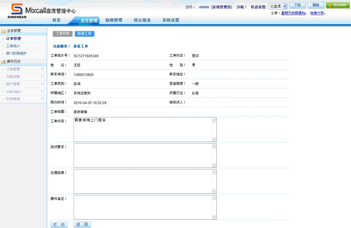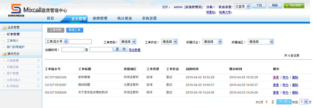 通過工單統(tǒng)計(jì)功能,座席人員可以看到所屬權(quán)限的所有工單和狀態(tài)。