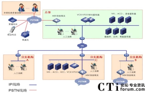 該結(jié)構(gòu)是將呼叫中心的全部設(shè)備(設(shè)備由網(wǎng)音提供)都部署在用戶(hù)現(xiàn)場(chǎng),用戶(hù)可以以企業(yè)總部為核心部署遠(yuǎn)點(diǎn)坐席及遠(yuǎn)端接入。