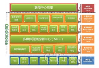 - 應用接口層,上層應用必須通過應用接口調(diào)用各種媒體服務,確保了應用對下層平臺的合法調(diào)用,從而保證整個平臺的穩(wěn)定性。QuickVoice提供了豐富的簡單易用的應用接口,使用戶可以最大限度發(fā)揮平臺功能,構(gòu)筑任意復雜的呼叫中心應用