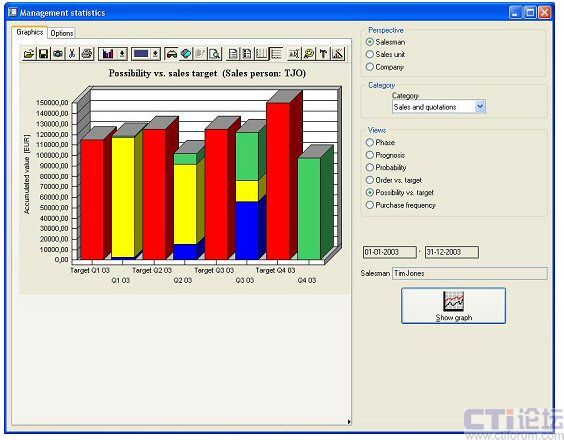 使企業(yè)用戶可以獲得與銷售相關(guān)的主要信息的圖形化視圖。通過該方案能夠簡化機(jī)會和管道管理,由此可獲得銷售和營銷成果的即時概況,同時可以提供銷售和營銷經(jīng)理與其團(tuán)隊(duì)之間的有效協(xié)作。企業(yè)可通過系統(tǒng)建立和監(jiān)視銷售單位中每個成員的銷售目標(biāo),并可以快速方便地瀏覽或修改該目標(biāo),能夠快捷地獲得季度或年度目標(biāo)的即時概況,并且使用直觀的圖形化圖表顯示這些關(guān)鍵數(shù)據(jù)和數(shù)據(jù)趨勢。管理層還可以對銷售歷史的任意時間段中的銷售人員相關(guān)的收入和支出、盈利和虧損數(shù)據(jù)進(jìn)行分析和比較。