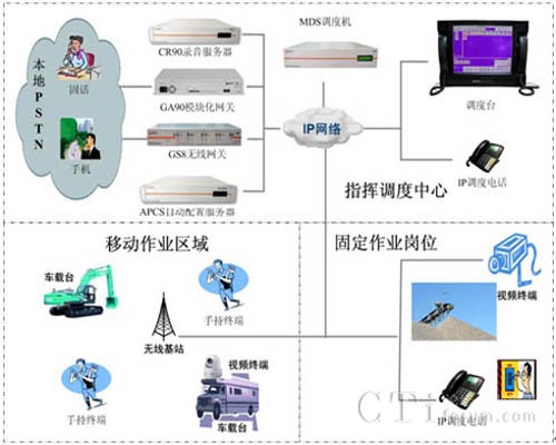 MDS系統(tǒng)可以應用于各種作業(yè)現(xiàn)場的指揮調(diào)度, MDS系統(tǒng)不但支持系統(tǒng)基本的語音通信,調(diào)度中心可以通過視頻、數(shù)據(jù)、文本消息等綜合的多媒體方式與作業(yè)人員進行通信交互,滿足各種復雜環(huán)境下的指揮調(diào)度需求。系統(tǒng)可以通過GS8無線網(wǎng)關(guān)、GA90