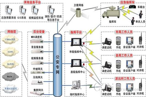 一方面,由于公安系統(tǒng)承擔(dān)著打擊違法分子、維護(hù)社會(huì)穩(wěn)定的責(zé)任。因此就要求公安指揮人員能夠在出現(xiàn)緊急狀況時(shí),能夠在第一時(shí)間安排公安人員前往處理,并且能夠在處理的過(guò)程中實(shí)時(shí)的指揮中心進(jìn)行溝通,同時(shí)為了保證公安系統(tǒng)工作的高效性,要求能夠?qū)崿F(xiàn)市指揮中心直接和分布在全市、縣區(qū)分局、派出所、巡邏人員進(jìn)行直接的通信,由指揮中心根據(jù)事態(tài)的發(fā)展,統(tǒng)一調(diào)度各方面的資源來(lái)配合處理,爭(zhēng)取在最短的時(shí)間解決突發(fā)事件,防止事態(tài)的發(fā)展。