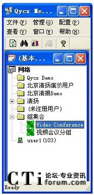 系統(tǒng)已經(jīng)默認(rèn)將這三個賬戶加入了分組。如上圖所示。 這樣客戶端運(yùn)行起來以后就可以發(fā)起視頻會議進(jìn)行視頻會議了,不需要再在服務(wù)器端進(jìn)行任何操作。這三個賬戶可以隨意的更改密碼、如果不想使用這三個賬戶名,可以刪除重新建立賬戶名,除此以外,還可以建立新的賬戶,并加入分組。這些操作都是在服務(wù)器端進(jìn)行的。詳細(xì)的操作請參看用戶手冊或者是FLASH教程。有了用戶名和密碼以后,無論走到哪里,使用任意一臺電腦登錄自己的帳號,就可以參加會議,這樣就無需服務(wù)器端總是臨時變更組成員。