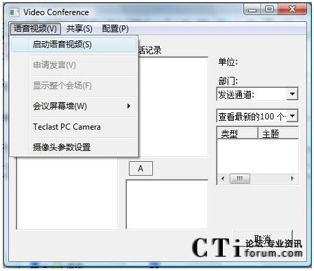 客戶端登錄以后,選擇一臺配置好的電腦發(fā)起視頻會議,雙擊組集合下面的組,在打開的對話框中,點(diǎn)擊[語音視頻]/[啟動語音視頻]: