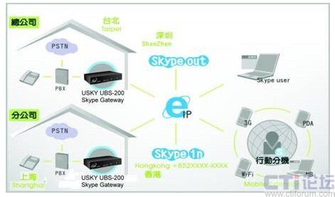 本公司新推出USKY UBS-400(4 ports)/UBS-200(2 ports) Skype Gateway,是專為企業(yè)用戶所設計的外接式Skype網關。只須將原有電話交換機(PBX)連接上我們的USKY UBS-400/UBS-200,企業(yè)用戶無需改變撥號方式,便可輕松透過桌上電話撥打或接聽Skype電話,將傳統(tǒng)電話提升為網絡電話(VoIP),既簡單又方便!有效幫助企業(yè)用戶增加通話效率,更能大幅減少通話費。