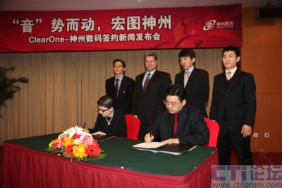 2009年3月10日,國內最大的整合IT服務提供商神州數(shù)碼和國際領先的高端音頻會議系統(tǒng)供應商ClearOne在京簽約,共同拓展國內音頻會議系統(tǒng)市場,依托ClearOne的技術、產品、行業(yè)優(yōu)勢和神州數(shù)碼強大的市場號召力及運維能力,開創(chuàng)國內音頻會議系統(tǒng)領域全新格局,為企業(yè)、教育、培訓、醫(yī)療及政府等行業(yè)客戶帶來全新震撼體驗!