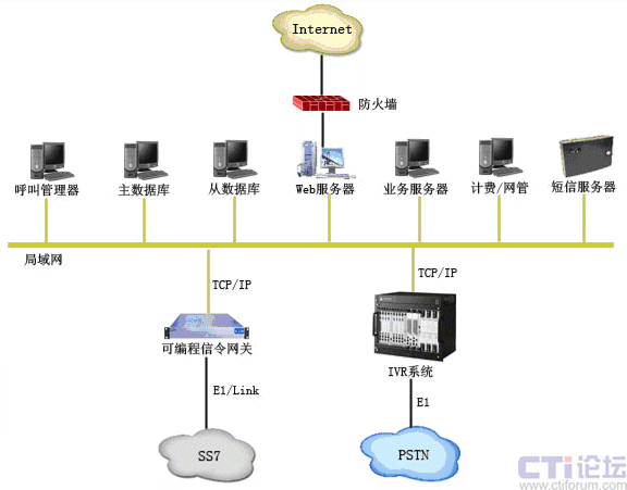 - 可編程信令網(wǎng)關(guān): 通過(guò)E1接入SS7信令網(wǎng),專門負(fù)責(zé)七號(hào)信令的處理;
