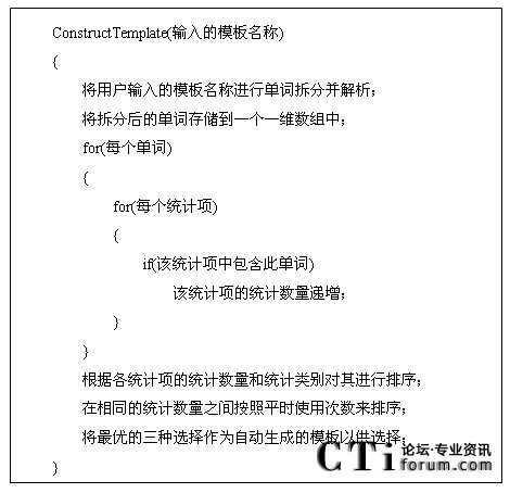 由模板結構框架圖得知,模板包括模板名稱,數(shù)據(jù)統(tǒng)計對象,收集數(shù)據(jù)的頻率和多個基本統(tǒng)計項。其中,每個統(tǒng)計項對應著統(tǒng)計對象(如:坐席,路由點等)的一條統(tǒng)計內容信息(如:1小時內的呼叫總量等)。然后由這些統(tǒng)計項和統(tǒng)計參數(shù)組合成模板,從而構成對呼叫中心對象的統(tǒng)計信息。