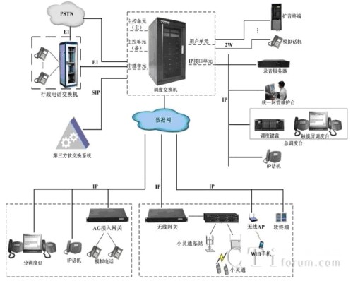 系統(tǒng)提供IP接口資源,可直接接入IP話機(jī)、軟電話等IP終端作為網(wǎng)內(nèi)分機(jī)用戶。網(wǎng)內(nèi)用戶可作為行政用戶,也可根據(jù)需要授權(quán)調(diào)度用戶。
