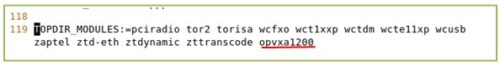 找到 TOPDIR_MODULES= 開頭的這一行,添加opvxa1200 ,保存退出