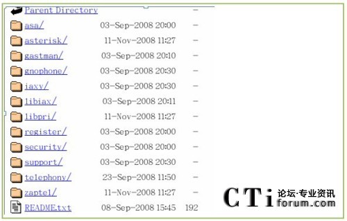 點(diǎn)擊進(jìn)入,找到zaptel ,libpri,asterisk和asterisk-addons 文件夾,分別點(diǎn)擊進(jìn)去下載所對應(yīng)版本的包到/usr/src/目錄下,如圖: