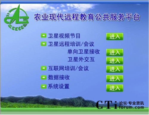 農(nóng)業(yè)現(xiàn)代遠(yuǎn)程教育平臺將先進的多媒體寬帶DVB衛(wèi)星通信系統(tǒng)和全面的網(wǎng)絡(luò)遠(yuǎn)程教育培訓(xùn)/會議系統(tǒng),天(衛(wèi)星網(wǎng))地(互聯(lián)網(wǎng))合一,集成廣播、電視和網(wǎng)絡(luò)的功能,形成了廣覆蓋、大容量、多功能、低成本、快捷高效的遠(yuǎn)程教育培訓(xùn)網(wǎng)絡(luò)、技術(shù)培訓(xùn)資源傳輸通道和網(wǎng)絡(luò)視頻會議系統(tǒng),是面向“三農(nóng)”開展多形式多層次現(xiàn)代遠(yuǎn)程教育培訓(xùn)、科學(xué)普及、技術(shù)推廣和信息傳播的公共服務(wù)平臺。同時,該平臺也是首個將視頻會議/培訓(xùn)接入衛(wèi)星網(wǎng)絡(luò)的系統(tǒng),將遠(yuǎn)程視頻會議帶入了新的通訊領(lǐng)域,也為遠(yuǎn)程視頻會議的運用開創(chuàng)了一片新的天地。