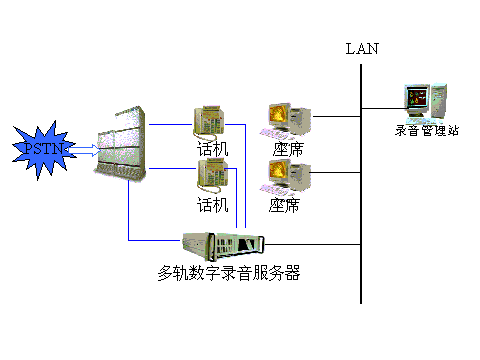 一、 錄音系統(tǒng)概念: 在通訊領(lǐng)域中,電話網(wǎng)范圍已經(jīng)普及到中國(guó)的各個(gè)角落成為主要的通信手段,通過(guò)電話人們可以相互溝通,傳達(dá)信息,通話過(guò)程中錄制有效的信息越來(lái)越得到各企事業(yè)的重視。在商務(wù)服務(wù)領(lǐng)域,各行業(yè)建設(shè)了客戶服務(wù)中心既"呼叫中心"代替?zhèn)鹘y(tǒng)的柜臺(tái)業(yè)務(wù),通過(guò)錄音記錄業(yè)務(wù)代表的服務(wù)質(zhì)量對(duì)其進(jìn)行監(jiān)督和考核以便提高企業(yè)的名譽(yù);在政府安全部門(mén)對(duì)一些重點(diǎn)監(jiān)控對(duì)象的往來(lái)通信進(jìn)行錄音和實(shí)時(shí)監(jiān)聽(tīng),以及對(duì)某些重要指令錄音。