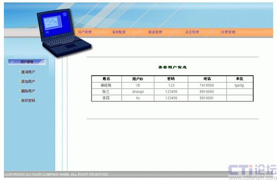 監(jiān)控功能:利用通話錄音、監(jiān)聽等手段,對服務(wù)質(zhì)量進(jìn)行監(jiān)控,實(shí)現(xiàn)對服務(wù)員的考核。