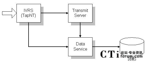 后臺(tái)程序使用Data Service 作為數(shù)據(jù)庫(kù)中間插件,TapNt(IVR)負(fù)責(zé)運(yùn)行流程。TapNt(IVR)查詢(xún)數(shù)據(jù)要通過(guò)Data Service來(lái)進(jìn)行。這項(xiàng)設(shè)置的目的在于使數(shù)據(jù)插件得到充分利用。當(dāng)話(huà)務(wù)量增多時(shí),可以多開(kāi)幾個(gè)Data