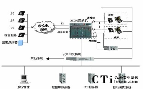綜合接警平臺(tái)主要由hxd09可編程智能語(yǔ)音交換機(jī)和計(jì)算機(jī)網(wǎng)絡(luò)兩部分組成,交換機(jī)負(fù)責(zé)110、119、122報(bào)警電話的接入與分流及調(diào)度呼出等功能;計(jì)算機(jī)網(wǎng)絡(luò)則完成110、119、122報(bào)警信息的顯示、數(shù)據(jù)儲(chǔ)存、統(tǒng)計(jì)及信息查詢、發(fā)布功能。