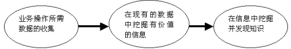 知識管理是在應用操作的基礎上發(fā)展起來的,它經歷了數(shù)據收集、信息挖掘和知識發(fā)現(xiàn)的三個歷程,如下圖所示。