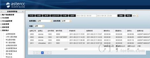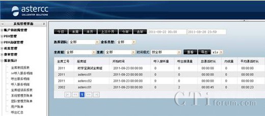 asterCC自動生成的各種數(shù)據(jù)報表,讓您能很快的從成千上萬的通話中分析到關(guān)鍵的信息。這樣銷售業(yè)績及客服質(zhì)量的情況便清晰可見。根據(jù)豐富的數(shù)據(jù)報表,給決策者做戰(zhàn)略性市場定位提供有力的數(shù)據(jù)參考,對業(yè)務(wù)的開展也起到了促進作用,同時也便于進行員工的績效考核。
