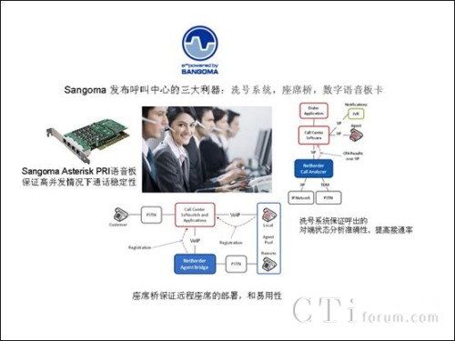 多年的北美通信市場和asterisk開源市場的磨練,和Sangoma產(chǎn)品通過在國際市場的經(jīng)驗,sangoma 發(fā)布的產(chǎn)品充分得到了呼叫中心國際廠商和asterisk 呼叫中心廠家的認可,在洗號系統(tǒng),橋座席,語音板卡上面保證了呼叫中心的穩(wěn)定性,提高了呼叫中心的接通率,節(jié)省了座席遠程管理的成本。同樣,Sangoma 也非常希望分享Sangoma在國外市場的成果,把卓越的產(chǎn)品帶給呼叫中心的廠家和客戶。