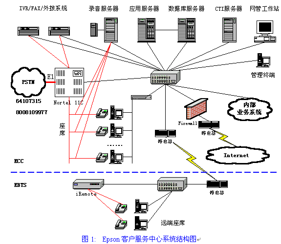 愛普生(中國)的客服系統(tǒng)采用數(shù)據(jù)集中與分散相結(jié)合、座席集中受理的方式進(jìn)行建設(shè)。其中,所有設(shè)備均配置在北京,所有座席均在北京受理客戶服務(wù)請(qǐng)求,
