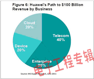 為了實現(xiàn)下一個成長目標,華為將專注于企業(yè)、設備和云計算等領域中的新機會。到2020年,上述每個領域都將占該公司營業(yè)收入的20%,合計占60%。其余40%營業(yè)收入將來自該公司的傳統(tǒng)電信設備業(yè)務。