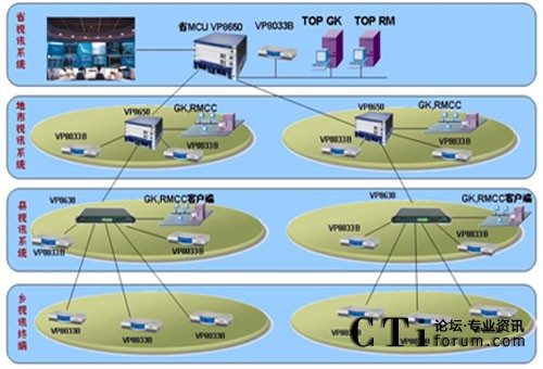 這是目前國內(nèi)最大的政府應(yīng)急視頻會議指揮系統(tǒng),現(xiàn)網(wǎng)可以借鑒的經(jīng)驗(yàn)很少,華為公司充分意識到該項(xiàng)目的重大意義,投入大量人力物力進(jìn)行網(wǎng)絡(luò)環(huán)境調(diào)研和客戶需求分析,經(jīng)過眾多專家和工程人員的反復(fù)論證,最終該套系統(tǒng)采取了分布式三級級聯(lián)組網(wǎng)結(jié)構(gòu)和四級分級分權(quán)管理模式,具有強(qiáng)大的備份能力和豐富的功能特性,在省和9個地市分別配置1臺8650MCU和1套管理軟件,在58個縣分別配置1臺8630 MCU,在1205個會議室分別配置1臺8033B終端。