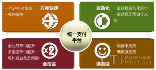 為徹底解決繳費(fèi)難的問題,全面提升鐵通用戶滿意度,降低欠費(fèi)率并提高整體寬帶續(xù)費(fèi)率,華創(chuàng)訊通公司推出統(tǒng)一支付平臺(tái),可幫助鐵通公司管理繳費(fèi)充值渠道,一點(diǎn)接入線上、線下多種支付渠道,包括鐵通總部網(wǎng)上營(yíng)業(yè)廳、移動(dòng)錢包、線下POS終端,全面支持鐵通公司各類預(yù)付、后付業(yè)務(wù)的繳費(fèi)。