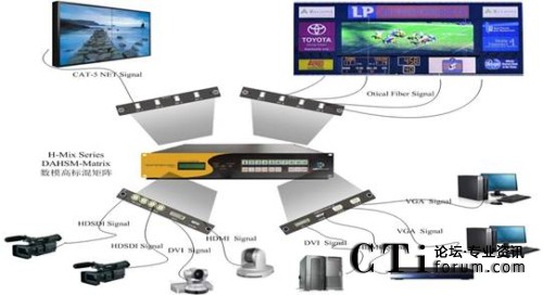 Kensence H-Mix系列產(chǎn)品專門為解決在視頻工程中遇到的諸多問題而設(shè)計,將數(shù)字視頻信號、模擬視頻信號、高清視頻信號和標清視頻信號混為一體處理成高清720p@60Hz或1080p@60Hz信號的HDMI的高清數(shù)字信號通過網(wǎng)絡(luò)傳輸?shù)囊豢疃嗝襟w混合矩陣。Kensence H-Mix采用Silicon Image HDMI v1.3芯片,支持HDMI\DVI\3GSDI\HDSDI\SDI\VGA\YPbPr\CVBS信號的輸入和HDMI\DVI\CAT-5\光纖信號的輸出,可將VESA\CEA\HDTV各種不同分辨率的信號轉(zhuǎn)換為HDTV的高清視頻分辨率,并且可以通過普通五類雙絞線或多模光線進行高清視頻的傳輸。Kensence H-Mix可以通過網(wǎng)絡(luò)、RS232、IR、軟件、前面板對系統(tǒng)進行控制管理,采用插卡式設(shè)計可以任意進行系統(tǒng)組合,方便靈活。模塊化雙電源冗余熱備份功能可以實現(xiàn)7日24小時連續(xù)開機,保證系統(tǒng)安全可靠工作。