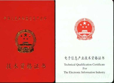 學員學完全部課程,并經(jīng)"基礎知識考試"和"行業(yè)技能交互式語音考核"后(兩項考核需全部通過),由"信息產(chǎn)業(yè)部電子行業(yè)職業(yè)技能鑒定指導中心"頒發(fā)全國通用的《中華人民共和國職業(yè)資格證書》以及信息產(chǎn)業(yè)部的《技術(shù)資格證書》。