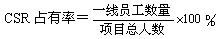 - 定義:即一線員工的占有率,是指一線員工數(shù)量與項(xiàng)目總?cè)藬?shù)之比。