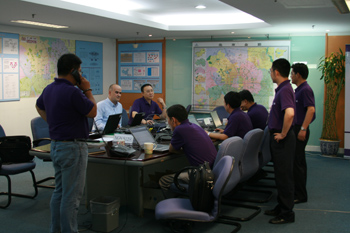 上海貝爾阿爾卡特工程師與客戶工作人員共同在原北京網(wǎng)通網(wǎng)管中心值守