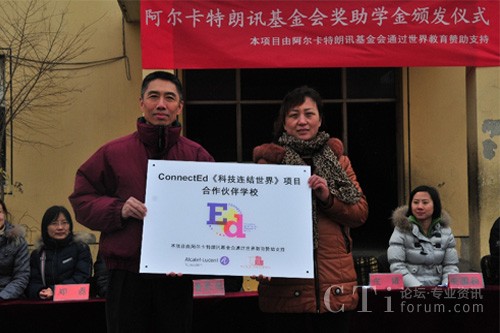 CTI論壇(ctiforum)3月6日消息(記者 浩宇):近日,法國阿爾卡特朗訊基金會(Alcatel-Lucent Foundation)與美國非營利組織世界教育(World Education)在北京市大興區(qū)農(nóng)民工子弟學(xué)!埡W(xué)校聯(lián)合舉辦公益助學(xué)活動,來自阿爾卡特朗訊中國旗艦企業(yè)——上海貝爾及世界教育的志愿者為45名貧困生、72名成績優(yōu)秀學(xué)生、244名成績進(jìn)步獎獲得者共計361人發(fā)放獎助學(xué)金和獎狀。此次活動是ConnectEd“科技連結(jié)世界”項目協(xié)助流動青少年“透過科技擁抱世界”系列公益活動的重要一站,ConnectEd “科技連結(jié)世界”項目由阿爾卡特朗訊基金會(Alcatel-Lucent Foundation)與世界教育(World Education)共同在全球推動。作為志愿者之一,上海貝爾執(zhí)行副總裁、阿爾卡特朗訊中國區(qū)產(chǎn)品與研發(fā)負(fù)責(zé)人莊靖博士參與了此次活動,并為阿爾卡特朗訊ConnectEd項目合作校揭牌。雙方還在北京市昌平區(qū)新源學(xué)校舉行了公益助學(xué)活動,為45名貧困生、39名成績優(yōu)秀學(xué)生、52名成績進(jìn)步獎獲得者共計136人發(fā)放獎助學(xué)金。