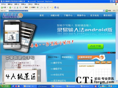 進(jìn)入首頁,映入眼簾的是藍(lán)色清新的網(wǎng)站界面,用戶選擇“點(diǎn)擊下載”健,即可快速體驗捷通華聲最新產(chǎn)品錄易輸入法Android版。捷通華聲錄易輸入法包括全屏手寫、窗格手寫和虛擬全鍵盤三種輸入方式,不僅識別速度快,識別率高,還可以連續(xù)書寫,豎屏疊寫,橫屏循環(huán)寫,它更貼合人們自然的輸入方式,喜愛觸屏上網(wǎng)、聊天、微博的用戶不可錯過!