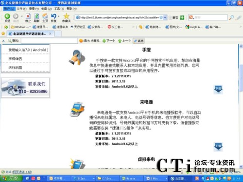在下載中心,除了錄易輸入法的下載外,用戶還可以下載捷通華聲的其他產(chǎn)品,直接啟動相應(yīng)程序的“手搜”;融入捷通華聲語音合成技術(shù)(TTS)的“來電通”;可以模擬來電應(yīng)用的“虛擬來電”;應(yīng)用捷通華聲國際頂級語音合成技術(shù)(TTS)的“聽書”和“語音詞典”,以及運(yùn)用捷通華聲語音合成技術(shù),匯集童聲、女聲、男聲、機(jī)器聲等數(shù)百種音效變幻的“天行樂園語音斗地主”。這些應(yīng)用不僅豐富了用戶的手機(jī),更打開了高新科技的大門,讓用戶隨時隨地享受各種移動互聯(lián)網(wǎng)服務(wù)。