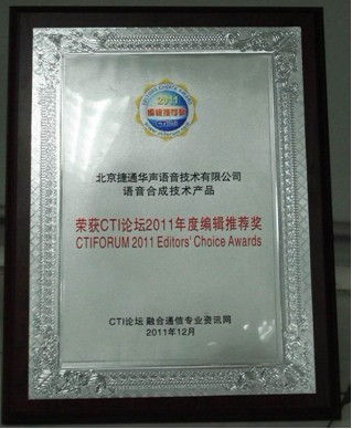 捷通華聲語音合成技術(shù)榮獲CTI論壇年度編輯推薦獎(jiǎng)