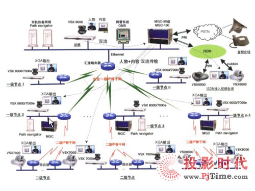 XGA ( 1204x768 )高分辨率輸出。可以根據(jù)系統(tǒng)的規(guī)模,在不同的主節(jié)點(diǎn)選擇 Polycom MCU : MGC25