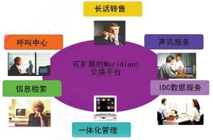 由于IP電話及計費(fèi)系統(tǒng)是搭建在通廣北電的Meridian 1交換平臺上,因此很容易實現(xiàn)其他業(yè)務(wù)的并存和提升。在項目實施中還可以加入呼叫中心的功能。它的構(gòu)建不僅能滿足現(xiàn)今IP電話的服務(wù)功能,還能為今后運(yùn)營商的其他業(yè)務(wù)提供服務(wù)。