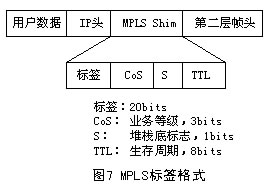 標(biāo)簽的格式取決于分組封裝所在的介質(zhì)。例如,ATM封裝的分組(信元)采用VPI和/或VCI數(shù)值作為標(biāo)簽,而幀中繼PDU采用DLCI作為標(biāo)簽。對(duì)于那些沒(méi)有內(nèi)在標(biāo)簽結(jié)構(gòu)的介質(zhì)封裝,則采用一個(gè)特殊的數(shù)值填充。圖7給出4字節(jié)填充標(biāo)簽的格式,它包含一個(gè)20bits的標(biāo)簽值、一個(gè)3bits的CoS值、一個(gè)1bit的堆棧標(biāo)識(shí)符和一個(gè)8bits的TTL值。此外.如果填充值被插入到一個(gè)PPP或以太網(wǎng)幀中,包含在各幀頭中的一個(gè)協(xié)議ID(或以太網(wǎng)類型)表示一個(gè)幀或者一個(gè)