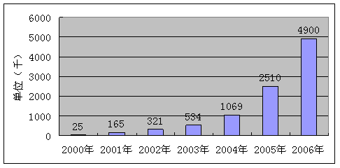 圖1 RIM公司2000-2006年Blackberry用戶(hù)數(shù)