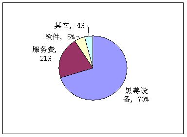 加拿大RIM公司是最早推出移動(dòng)PushE-mail業(yè)務(wù)的企業(yè),黑莓業(yè)務(wù)主要是以該公司為核心,也是目前最成功的移動(dòng)PushE-mail業(yè)務(wù)。該公司幾乎控制著圍繞黑莓業(yè)務(wù)的所有產(chǎn)品,包括終端、服務(wù)器、客戶(hù)端軟件、解決方案等,并且吸引了一批獨(dú)立軟件公司開(kāi)發(fā)基于黑莓的各種軟件產(chǎn)品,如即時(shí)通信軟件、移動(dòng)營(yíng)銷(xiāo)軟件、移動(dòng)CRM軟件等,RIM公司向這些軟件開(kāi)發(fā)公司收取專(zhuān)利費(fèi)用。另外,在業(yè)務(wù)方面,由于RIM公司控制NOC的運(yùn)維,因此運(yùn)營(yíng)商還需要向RIM公司支付服務(wù)費(fèi)。圖2為RIM公司2006財(cái)年業(yè)務(wù)收入結(jié)構(gòu)。