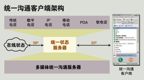 從MSN、QQ提供的語(yǔ)音聊天到曾經(jīng)風(fēng)靡一時(shí)的Skype,再到今天思科、北電、微軟、Avaya等推出的統(tǒng)一溝通桌面客戶端系統(tǒng),通信的“最后一公里”發(fā)生了根本的轉(zhuǎn)變。原來(lái)為了節(jié)省長(zhǎng)途話費(fèi)而設(shè)計(jì)的VoIP,今天和ERP、CRM一樣成為了以提高企業(yè)運(yùn)營(yíng)效率為目的的核心生產(chǎn)力系統(tǒng)。統(tǒng)一溝通最令人憧憬的未來(lái)是給最終用戶提供一個(gè)友好的通信界面:“所有的信息源匯總到一起,而用什么方式來(lái)取得這個(gè)信息,只要在手邊最方便的工具上輕輕點(diǎn)擊就OK了!