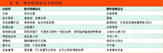與傳統(tǒng)的硬件視頻會議系統(tǒng)相比較,軟件視頻會議系統(tǒng)可以利用現(xiàn)有的網(wǎng)絡環(huán)境和計算機設備,并能夠提供不遜色于硬件系統(tǒng)的音視頻質(zhì)量和更為豐富的數(shù)據(jù)協(xié)作功能; 同時,物美價廉的系統(tǒng)投資和靈活方便的配置也是軟件視頻會議產(chǎn)品非常引人關(guān)注的優(yōu)勢。