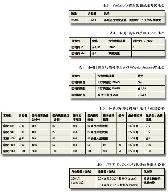 國外運(yùn)營商 移動數(shù)據(jù)業(yè)務(wù)資費(fèi)策略