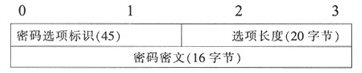 選項(xiàng)標(biāo)識(shí)定義為OPTION_CLIENT_PASS-WORD,類型為45,占2個(gè)字節(jié)。