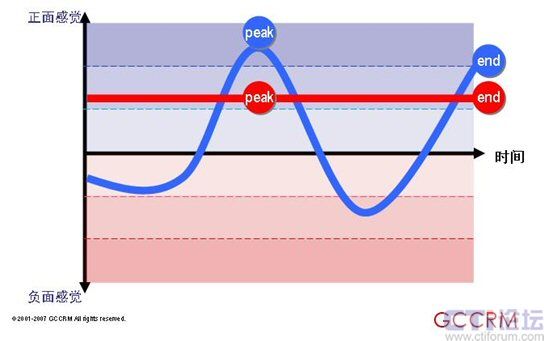 紅色情感曲線代表旨在提供全面理想體驗的傳統(tǒng)方法。藍色情感曲線反映的是一種資源分配的新方法,它專注于峰值和終了這兩個關(guān)鍵點同時將剩余子流程的表現(xiàn)控制在平均水平之下?此菩瘦^低的那個(藍色情感曲線) 產(chǎn)生的卻是效力更高的體驗 (在峰值和終了時產(chǎn)生更為積極的情感和深刻的記憶) ,同時藍色曲線消耗的資源相當于甚至還要少于紅色曲線。