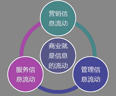 我們把商業(yè)信息化的需求特征進(jìn)行分析,用以下三種信息互動(dòng)概括:營(yíng)銷(xiāo)信息互動(dòng)、管理信息互動(dòng),服務(wù)信息互動(dòng)。