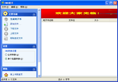 也有不少用戶利用UMD轉(zhuǎn)換工具將電子書轉(zhuǎn)換成UMD格式,但市場(chǎng)上的UMD轉(zhuǎn)換工具都不支持批量轉(zhuǎn)換功能,比如筆者最近想好好復(fù)習(xí)下英語。想將大量的英語資料制成手機(jī)電子書,在上下班坐車的時(shí)候?qū)W習(xí),使用普通的轉(zhuǎn)換器就會(huì)耗費(fèi)許多時(shí)間。經(jīng)過筆者不懈的上網(wǎng)挖掘,終于發(fā)現(xiàn)了一個(gè)好東東。掌上書院推出了首款UMD手機(jī)電子書批量制作工具UMD舵手1.0beta,據(jù)介紹,UMD舵手是目前唯一款UMD手機(jī)電子書批量制作工具,最多可一次性同時(shí)轉(zhuǎn)換300本以上的圖書,為喜愛自己動(dòng)手制作手機(jī)電子書的用戶提供了極大的方便,DIY個(gè)屬于自己的手機(jī)圖書館不再是夢(mèng)想了。